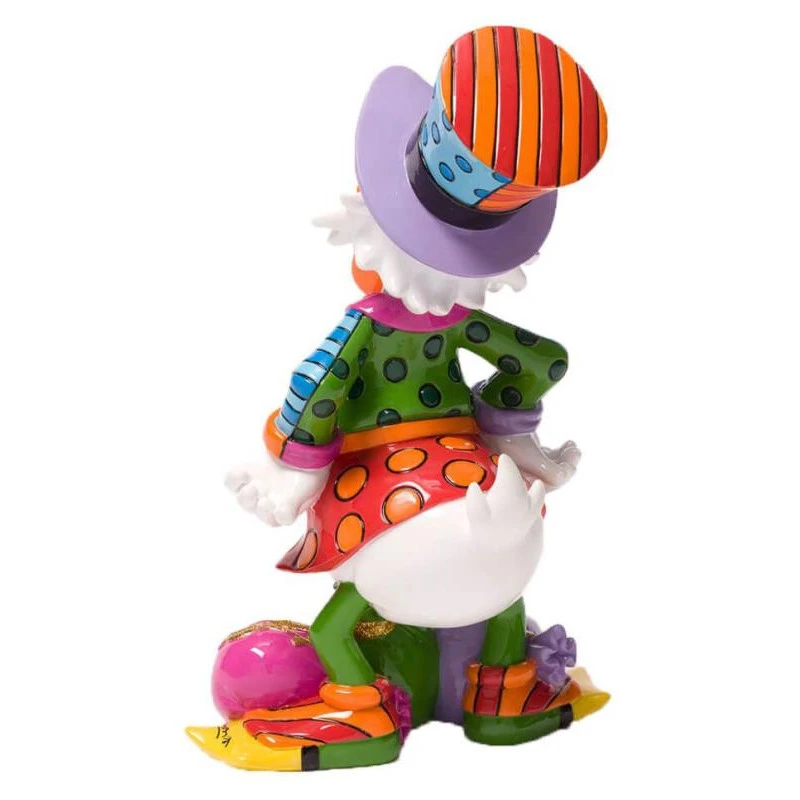 In this colourful piece Romero Britto has given Uncle Scrooge a reason to smile with vibrant colours and patterns painted on his coat and top hat. Bags of money can be seen laying by his feet, showcasing his wealth.