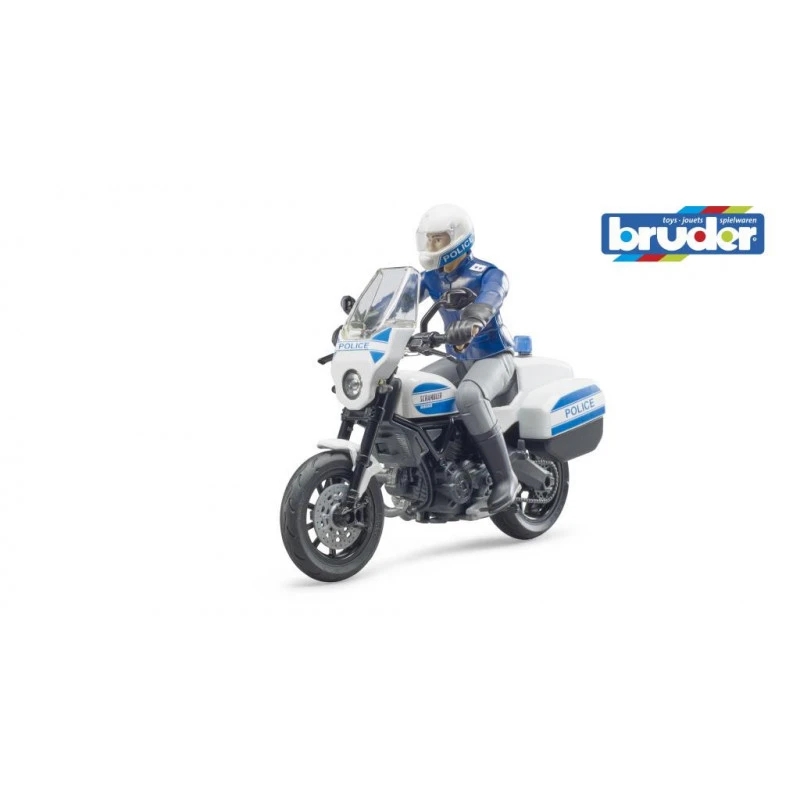 The bworld police force is being enhanced. The motorcycle police officer including motorcycle is the new member of the team. The benefits of police motorcycles are speed, agility and small amounts of required space. Consequently this vehicle convinces as part of traffic monitoring, road traffic collision reporting and in protection and escorting. The motorcycle on the basis of the Scrambler Ducati convinces with a very modern looking police design and the police officer can also rely on cutting-edge protective equipment. Some of the excellent products from the ample range of BRUDER and bworld items, such as the bworld police station (item no. 62730) and the Land Rover Defender off-road police vehicle (item no. 02597), make for perfect additions.