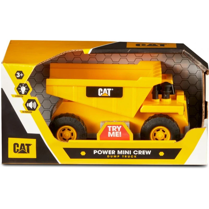 The Cat Power Mini Crew is ready to work! This push-powered vehicle comes equipped with realistic lights and sounds and articulated tray just like the real machine. Push the button to bring the action to life! 2 AAA batteries included. Features Dump Truck, Front Loader, and Bulldozer vehicles. Appropriate for ages 3 years and up.