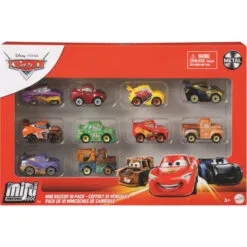 Race off on exciting Disney•Pixar’s Cars movie adventures with huge variety packs of mini cars. Each character vehicle features a metal body, rolling wheels and iconic details. Choose the entire assortment of 10-packs and recreate tons of Cars movie action and laughs! Each mini set includes a first look vehicle to make it a super special collection! Cars mini vehicle packs are sold separately, subject to availability. Colours and decorations may vary.Â