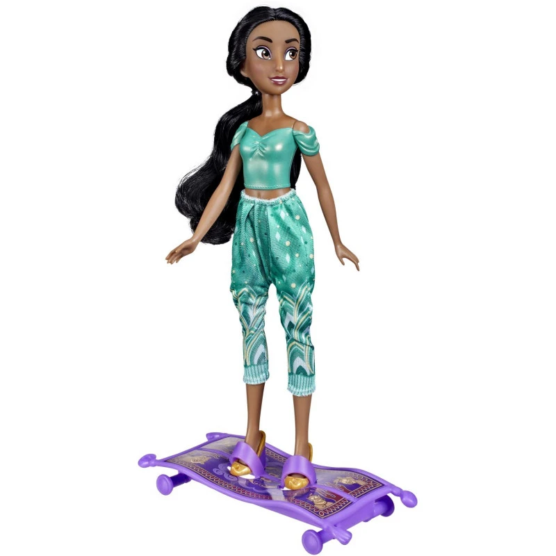 Always on the lookout for adventure, Jasmine loves to zip around the palace on her magic carpet. With this Disney Princess Jasmine and Magic Carpet set, kids can imagine how Jasmine keeps the fun going when she’s at the palace. The included Magic Carpet features wheels that spin and footholds for the doll’s feet. Disney’s Aladdin fans can pretend Jasmine is cruising through the corridors of the palace in style and having lots of fun with the Magic Carpet. This fashion doll has a molded bodice and is decked out with removable pants and shoes, inspired by Jasmine’s look in Disney’s Aladdin. Give this Everyday Adventures Princess toy as a gift for kids 3 and up who love to explore the exciting world of Disney Princess! Copyright Disney. Hasbro and all related terms are trademarks of Hasbro.