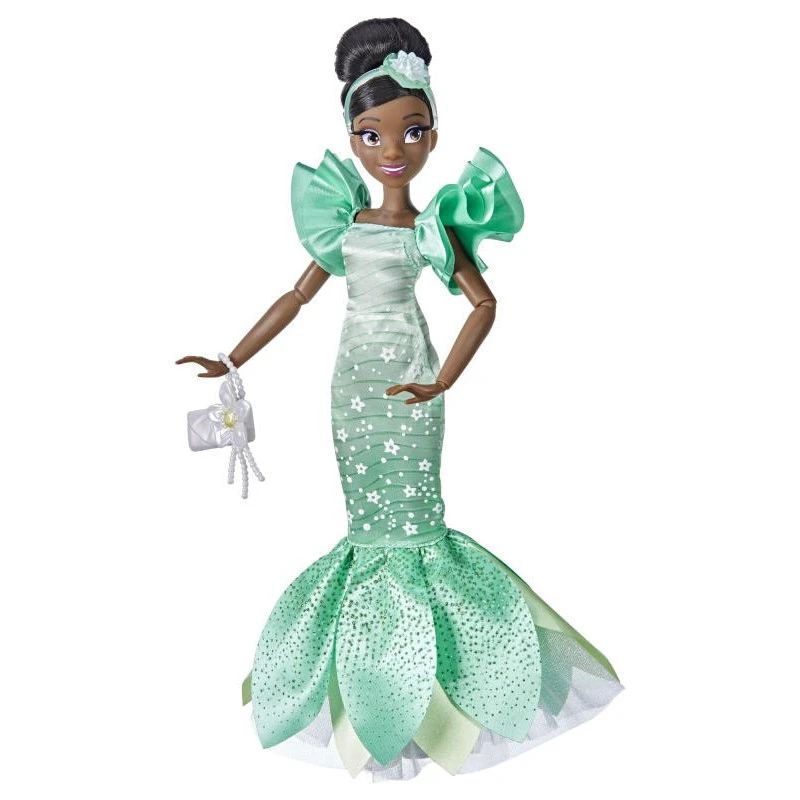 Shine a spotlight on this unique contemporary style with this gorgeously outfitted fashion doll! Beloved Disney Princess Tiana is stepping into the modern world in a dress that blends contemporary elegance and her iconic style from Disney’s The Princess and the Frog. Part of the Disney Princess Style Series, this collectable doll brings this beloved character into the contemporary world of high fashion.