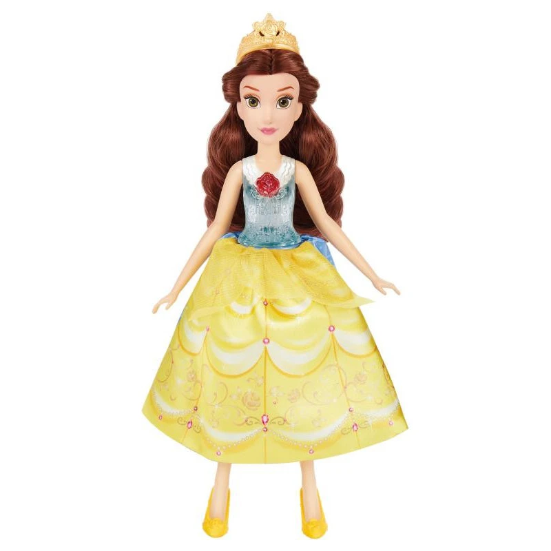 In the movie Disney’s Beauty and the Beast (1991), Belle changes from her village dress to a gorgeous yellow ball gown. Kids can imagine they’re helping this beloved character change her look with Spin & Switch Belle. Just squeeze the legs of this Disney toy together and her skirt spins around, changing from one dress style to the other with a magical sound effect. And when she goes from the village look to the yellow ball gown, her translucent bodice lights up yellow, too. There’s also a tiara and a hair bow to complement each look. Spin and Switch Belle stands 10.7 inches tall and makes a great gift for daughters and granddaughters 3 years old and up and is a great addition to a Disney Princess collection, alongside dolls of characters like Jasmine, Moana, Snow White, and more. (Other dolls sold separately. Subject to availability.)
