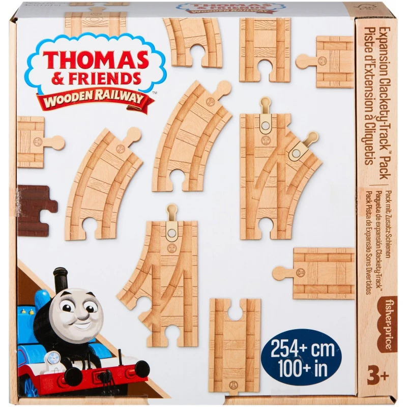 Young train lovers can grow their Thomas & Friends™ Wooden Railway world with this track expansion pack. The Fisher-Price® Thomas & Friends™ Wooden Railway Expansion Clackety Track™ Pack comes with switch tracks, track buffers, straight and curved track pieces, and adapters so kids can find a piece that fits just right and build a complete loop of track. With 22 pieces of Clackety Track™, little conductors can enjoy the satisfying sound any Wooden Railway engine makes as it rolls along the railway! (Engines sold separately and subject to availability). There is always more Sodor to explore when kids connect these track pieces to any Wooden Railway train set.
