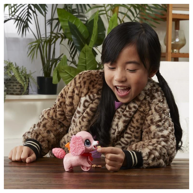 What’s more fun than walking a pet? Walking a pet that poops! Just connect the leash, give this cuddly puppy a few of his included treats, then take him for a walk. Ready for potty time? Push his tail down to help him poop, then use the small scoop to clean up! furReal Poopalots pets feature a connectible system that lets kids walk one pet, or their favorite pack! This poopin’ pup comes with a detachable leash to walk him across a tabletop, as well as a connector to add one Big Wags pet or up to two Lil’ Wags pets. (Other pets sold separately. Subject to availability.) Just push him along by his leash and he moves forward. Feed him first if you want him to poop. So, who’s ready for a nice walk after lunch?
