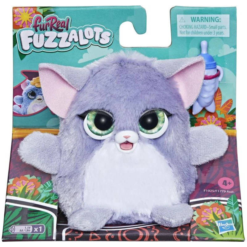 The interactive furReal Fuzzalots Kitty pet reveals her many moods though color and sound – when she’s hungry or thirty, she glows red (and she’s not very happy!). Feed her with her bottle for a calm, contented pet. When she’s sad, scared, or cranky, she’ll glow blue – and let you know she needs some cuddling! Pet her on her head and she’ll calm right down. It’s so much fun to know just how to care for your fuzzy pal. Love and care for her and you’re sure to become the best of friends! furReal and all related characters are trademarks of Hasbro.