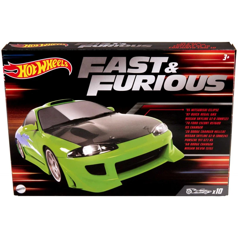 Speed into the ultimate Fast & Furious Hot Wheels® car collection with this 10-pack of toy cars from and inspired by the blockbuster franchise.Each vehicle is 1:64 scale and has elevated deco execution to rev up its collectibility.The set comes with 2 exclusive cars that won’t be sold elsewhere individually.®