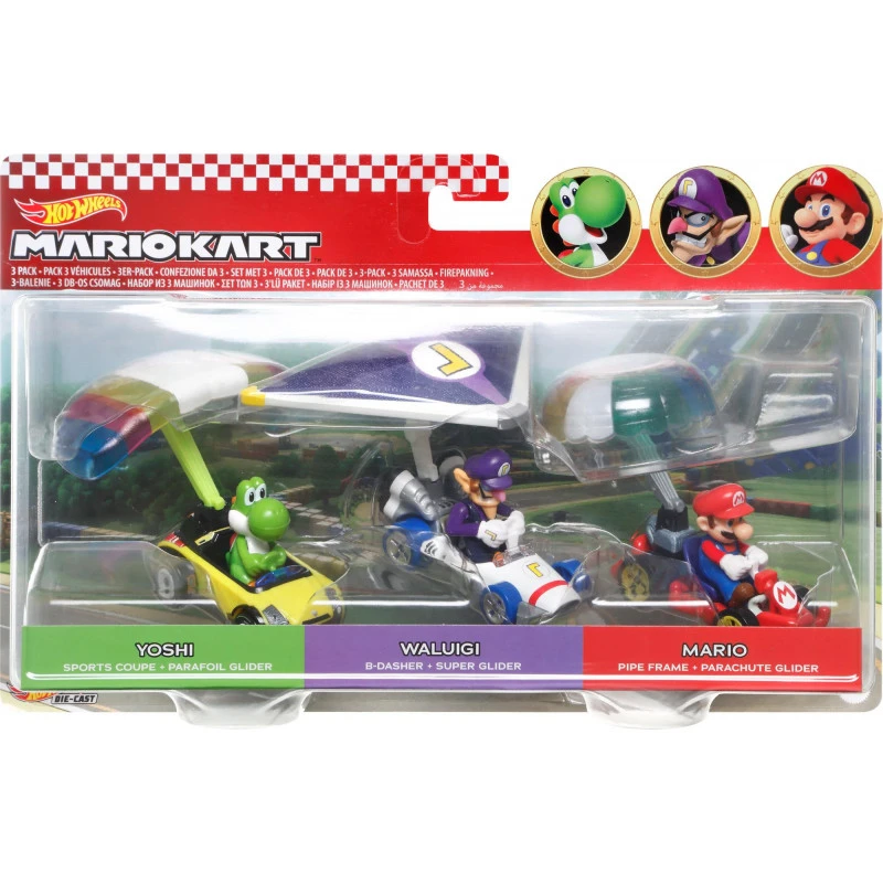 Fans can find three Super Mario character cars together to speed off for racing and stunting madness! Each Hot Wheels® Super Mario Character Car 3-Pack features a set of three 1:64 scale vehicles reimagined as fan-favorite characters from the iconic video game. Offering an instant collection, these Super Mario Hot Wheels® vehicles make a great gift for collectors and fans ages 3 years and older. Each 3-pack sold separately, subject to availability. Colors and decorations may vary