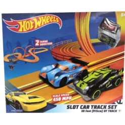 Let the race begin with Hot Wheels Slot Track Set 9.1M! Challenge your friend in this exciting race track! Set your wheels, boost your turbos, and hit the finish line first!