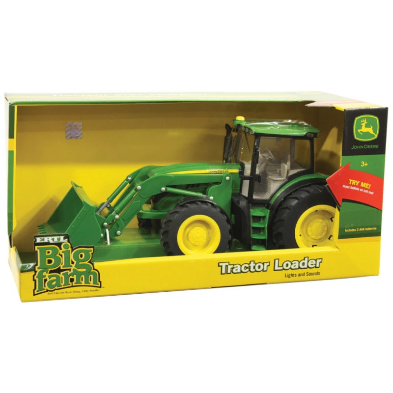 Drive the Tractor Loader and load it up with the front loader. The ERTL Big Farm Tractor Loader has lights and sounds. Tractor comes with 3 AAA batteries. Ages 3+.