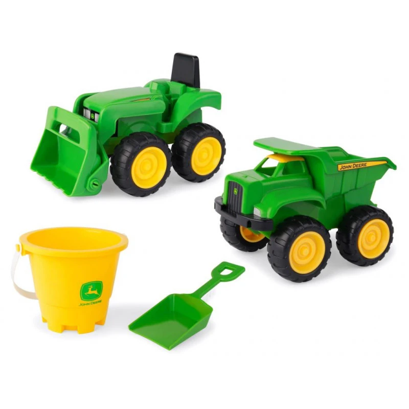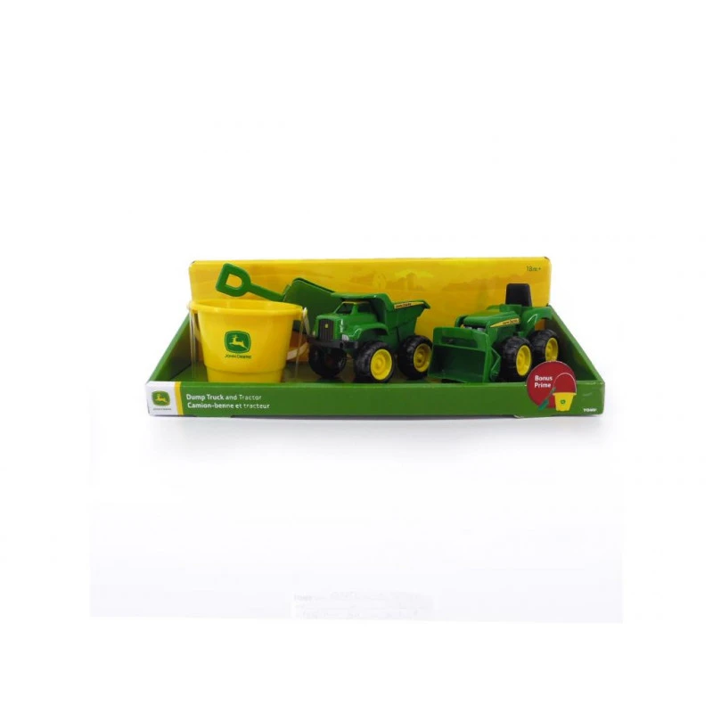 The 15” Big Scoop 2-Pack Value Set includes two vehicles, shovel and John Deere bucket. Fully-functional parts include dump truck with tilting bed and a working excavator scoop. Each vehicle features heavy duty plastic construction with free rolling wheels. Ages 3 years an dup. Produced by TOMY and officially licensed by John Deere.