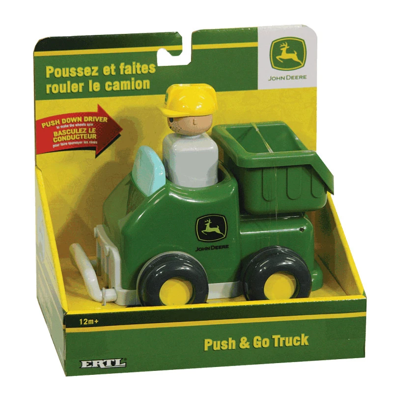 This John Deere Push and Go Truck is a cute little truck that zooms along when you press down on the drivers head! Classic green and yellow theme and chunky perfect for the little hands. The truck box also tilts and dumps. Encourages play, to develop your baby’s early skills.