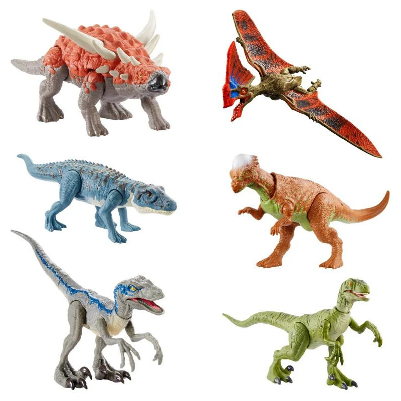 Be a part of the Jurassic World adventure with the ultimate in dinosaur rivalry and battle action! These smaller-size dinosaur action figures capture the ultimate movie action with their Savage Strikeâ„¢ attack moves iconic to their respective species. Play out movie action scenes with Savage Strikeâ„¢ attack moves like biting, head ramming, wing flapping and more. Just press a designated area on the dinosaur action figure to make it move (each dinosaur activation varies). Figures also include articulated arms and legs, realistic sculpting and authentic decoration. Get ready to battle it out—Savage Strikeâ„¢ style—with these fierce action figures (each sold separately, subject to availability). Colours and decorations may vary. Makes a great gift for ages 4 years old and up especially fans of the Jurassic World, dinosaurs and action play! For more dinosaur fun, download the Jurassic World Facts app (Android and iOS) to scan and watch each dinosaur come to life, learn attack facts, compare stats and more!Â
