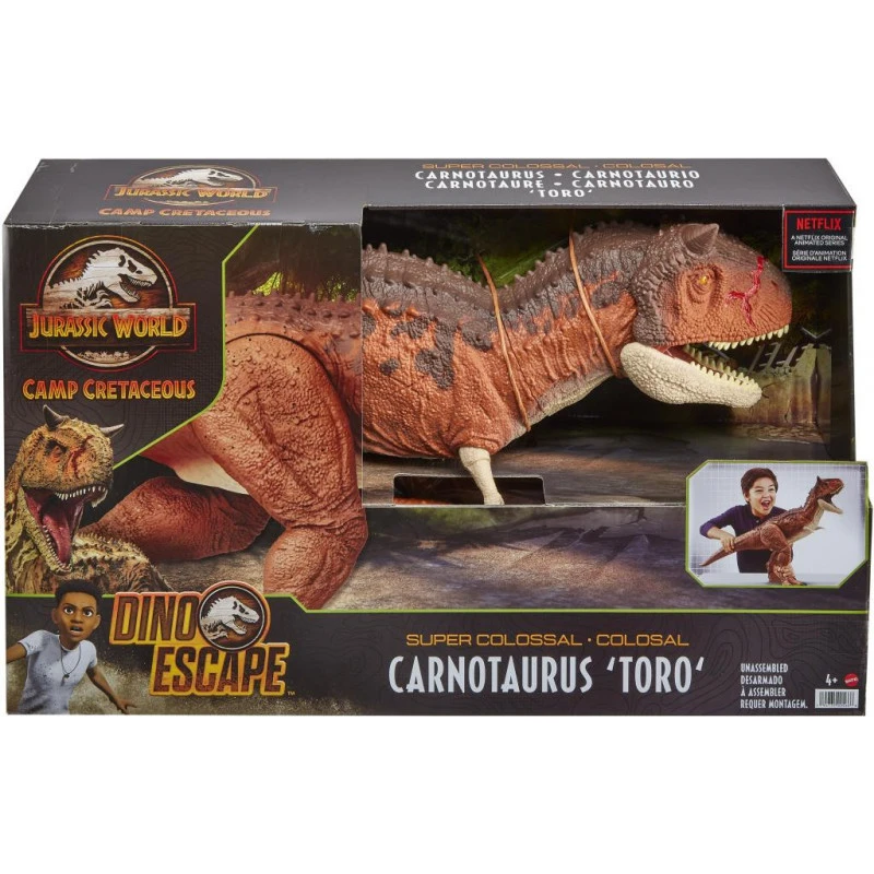 Get ready for thrilling action and adventure with Jurassic World Dino Escape! Inspired by the Jurassic World: Camp Cretaceous series, this Super Colossal Carnotaurus dinosaur action figure comes in a HUGE size and can swallow mini action figures whole (unlatch belly to release). Also features authentic sculpting sculpture, texture and colour. Makes a great gift for ages 4 years old and up especially fans of the Jurassic World, dinosaurs and action play.Â