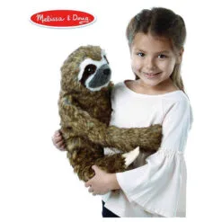 Kids will love hanging around with this adorable and cuddly sloth! Its long arms clasp together with self-stick tabs so this sloth is a terrific hugger. When it’s not catching a piggy-back ride or hanging from a lamp or chair, the sloth sits on its own about 14.5 inches high. The lushly coloured fur is both durable and silky-soft to the touch, while quality construction means it will hold up to years of hugs and snuggling. Detailed features include a sweet tri-coloured face, squishy nose, soulful eyes, and long (but soft) “claws” on its bendable arms and legs. • Sitting stuffed plush lifelike sloth • Hands clasp together with self-stick tabs for hanging, piggy-back rides, and lots of hands-free hugs • Silky-soft fur and quality construction make the sloth irresistible to hug and cuddle • 14.5″H x 12″L x 12.25″W • For 3+ years • Realistic details include sweet tri-coloured face, squishy nose, soulful eyes, and long (but soft) “claws” on bendable arms and legs.