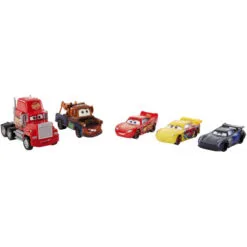 ?Create an instant Disney and Pixar Cars 3 collection with five character cars in one set that celebrates Piston Cup Racing. Fans will love unboxing the package to reveal a fold-out scene and perforated storytelling pieces inspired by the Florida 500 Piston Cup race. Lightning McQueen, Mater, Cruz Ramirez, Jackson Storm and Mack are ready to roll right out of the box into racing fun for play and display. Recreate moments from the film or create new memories — kids and collectors will love bringing the movie to life via play and display. With lots of fan-favorite elements, this Disney and Pixar Cars five-pack set makes a great gift for fans of the film ages 3 years old and up. Colors and decorations may vary.
