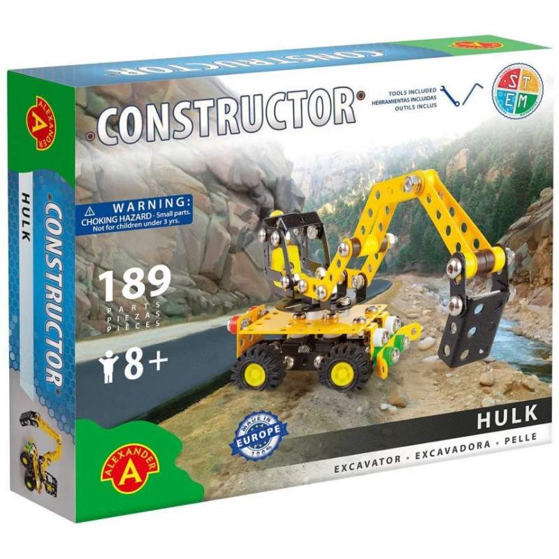 CONSTRUCTOR is a series of toy models to assemble on your own. This 189 piece ‘Hulk’ excavator consists of metal pieces of different shapes and sizes with complementary plastic parts visually enhancing its design. Includes tools with which to asssemble the kit.