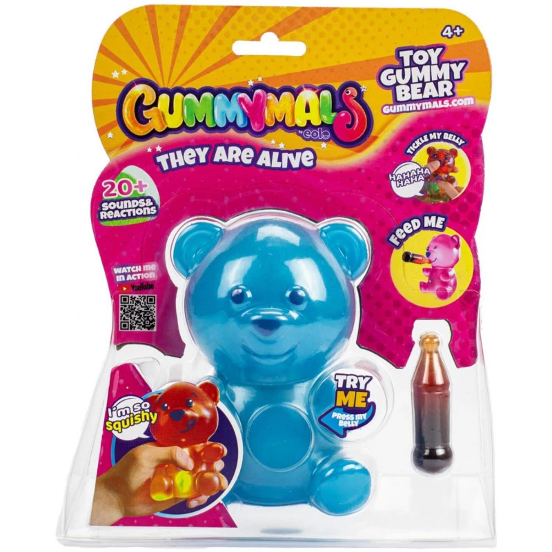 These soft electronic pets are fully interactive! Tickle the tummy and watch it wiggle. Shake it and the gummy bear can’t stop jiggling! Feed the Gummymal and unlock nap time mode. With over 20+ reactions and sounds, plus isolated sensors and light up body, there’s hours of fun to have with Gummymals. Nurture and discover your Gummymals pets! Assortment includes 4 different coloured pets: blue, yellow, red, & purple.