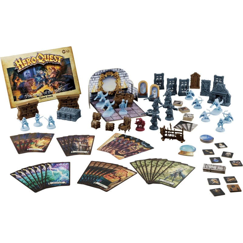In this The Mage of the Mirror expansion to the HeroQuest adventure, you’re challenged to confront the diabolical archmage Sinestra and save the kidnapped Princess Millandriell! As a courageous Elf, will you survive the perilous solo quests to prove your strength and valor? You must recover a legendary sword, free two of the Queen’s attendants, and navigate safely through a treacherous maze. Only then will your fellow heroes join you to pass through the mirror to the Realm of Reflection and try to free the princess. Immerse yourself in the fantasy with 10 daring quests, stunning artwork, 33 detailed miniatures, and full-color tiles. (Requires HeroQuest Game System to play. Sold separately.) This game has limitless replayability, and you can also create your own quests and stories. Gather friends together for an exciting night of tabletop gameplay in an epic battle of good and evil. The game is for 2-5 players, ages 14 and up. Avalon Hill and all related trademarks and logos are trademarks of Hasbro, Inc.