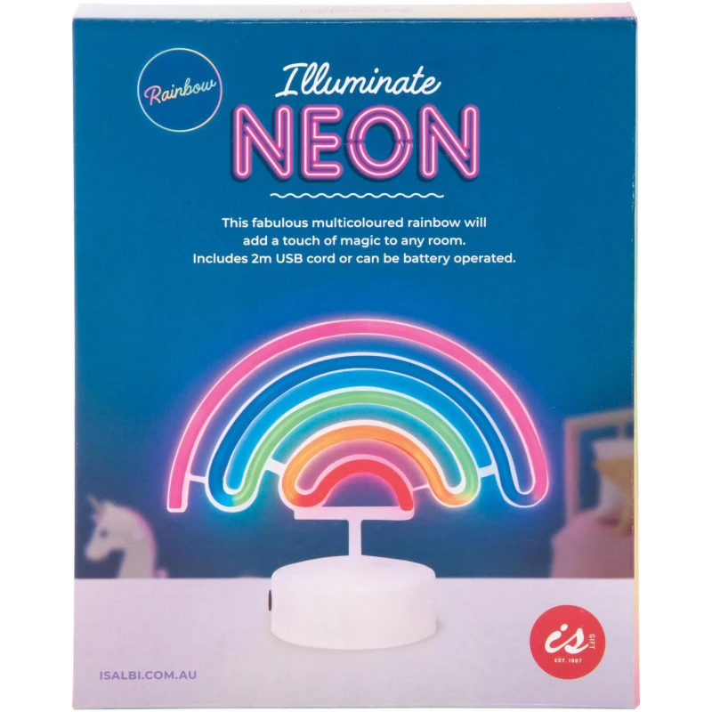 This fabulous multicoloured rainbow will add a touch of magic to any room. Simply turn on the illuminate the stylized white outline with fluoro multicoloured ‘neon’ light. Includes a handy 2m USB cord or can be battery operated (3 x AA batteries not included), so you can take it anywhere!