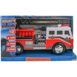 The Might Fleet Might Motorised Fire Ladder Truck is action-packed with multiple features including an extending motorised ladder and realistic Hyper-Lighting! Pull the lever to rotate the ladder from left to right or move the ladder manually to raise it up or down. This fire engine is full equipped with realistic sounds and flashing lights at the push of a button! Appropriate for ages 3 ears and up. Three AA batteries included. Motorised Action: Pull the lever to rotate the ladder from left to right or move the ladder manually to raise it up or down. Flashing Lights and Sounds: This fire engine is fully equipped with realistic sounds and flashing lights at the push of a button. Educational Value: Build sensory development and fine motor skills while encouraging creativity and learning through play.