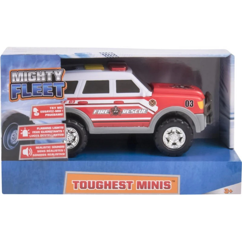 Might Fleet Toughest Minis are built for rugged fun! These Might Fleet vehicles ma be small, but the’re tough enough to get the job done. Each vehicle comes equipped with different features, ranging from working parts to hper-lighting and realistic sound effects! Appropriate for ages 3 ears and up. Batteries included. Each sold separatel. Collect them all!
