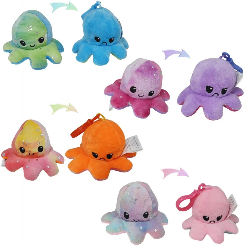 The OCTPL-S6 REVERSIBLE OCTOPUS is a unique and versatile toy that offers twice the fun. With a soft and cuddly body and eight tentacles, this plush octopus is perfect for snuggling up with or using as a pillow. But what sets this octopus apart is its reversible design, with one side featuring a happy expression and the other a sad expression. By flipping the octopus inside out, you can change its mood and express your own feelings. Measuring 60cm in length, this octopus is the perfect size for both kids and adults. It makes a great gift for anyone who loves cute and quirky toys.