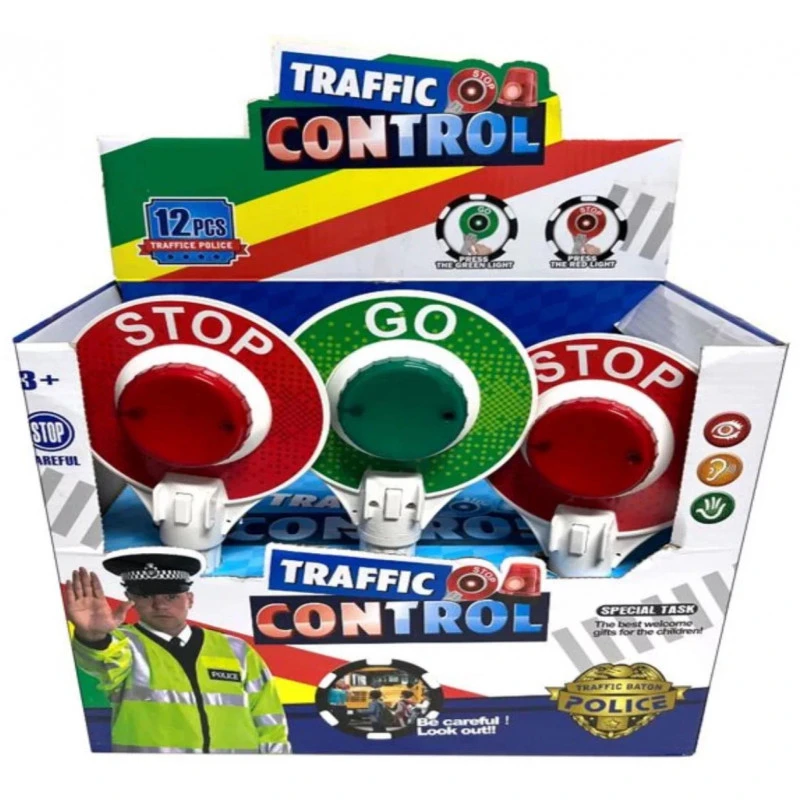 Stop (Red) on one side, Go (Green) on the other. Press the button for these traffic controllers to light up. Approx 23.5cm tall.