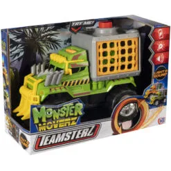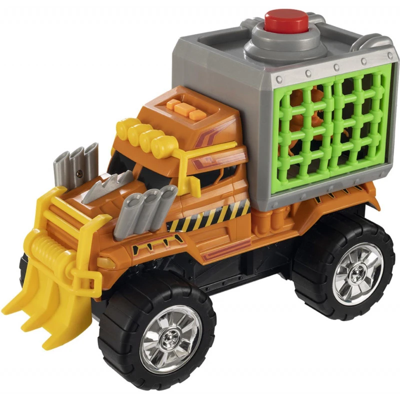 This action-packed Teamsterz Monster Moverz Dino Escape vehicle accelerates into action at the press of a button! This truck is hauling cargo but beware – the cargo is trying to break free! Press the big red button to see the dinosaur pop out and light up. Listen to the engine as it roars to life, then watch as it motors forward with the cage rattling! Press the other buttons to activate lights and dinosaur sounds. The perfect gift for any enthusiastic little driver, offering hours of imaginative fun! Aiding the development of your little ones social skills and fine motor skills as this vehicle is the perfect size for push along play. Suitable for ages 3+.