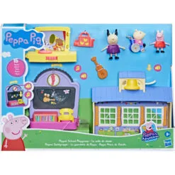 The Peppa’s School Playgroup playset toy lets kids ages 3 and up imagine an entire school day spent with Peppa Pig. Inspired by Peppa’s schoolhouse as seen in the animated series, this toy is sure to get preschoolers excited about going to school themselves! There’s a bell preschoolers can ring by pushing a lever. Is everyone on time? Kids can also move the hands of the clock and turn a dial to change the lessons that appear on the chalkboard as Madame Gazelle narrates. She might say, “Today we are learning about music.” There’s a hotspot in front of the board, too; place a figure on it to hear more phrases, such as “Please children, no glitter!” The stage comes with a double-sided backdrop; kids can place any 3” figure on it, turn the dial, and watch it move. With 3 figures and 9 accessories, this oinktastic gift is sure to make any preschooler even more excited about Peppa, and school! © 2021 ABD Ltd/Ent. One UK Ltd. Hasbro and all related terms are trademarks of Hasbro.