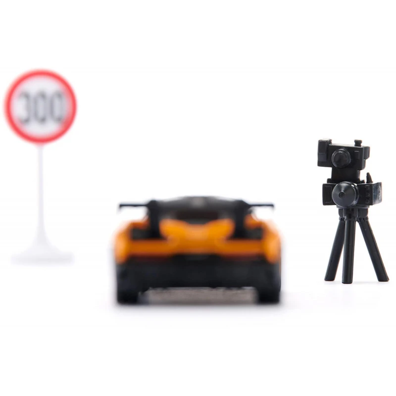 Even separately, these three super sports cars make the heart of every single car fan beat faster! With immediate effect, siku is now combining them in an exceptional gift set of horsepower ostentation. The Lamborghini Veneno, the Apollo I.E., and the McLaren Senna all have around 800 horsepower, and master the sprint from 0 to 100 km/h in less than 3 seconds. But not only their performance data is breathtaking. Their design also sets benchmarks for sports cars. Distinctive line, large spoilers, wide door sills, and gull-wing doors radiate the pure sensation of the race track. As in the full-scale originals, all three cars have the typical spoiler, and on the Apollo I.E. the gull-wing doors actually open. Sports rims with rubberised tyres are naturally included in the siku series. All three vehicles are currently amongst the fastest, most powerful, dearest, and most unusual vehicles in the world. For the small sheriffs-to-be, this set also includes a “300 km/h” road sign and a speed camera, because one thing is clear: With such horse powers, the 300 km/h limit is soon smashed!