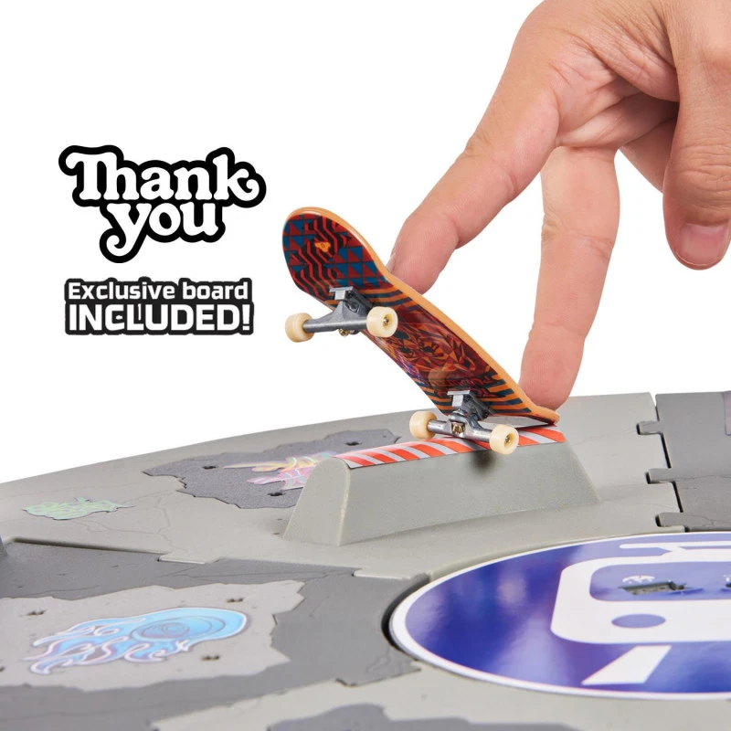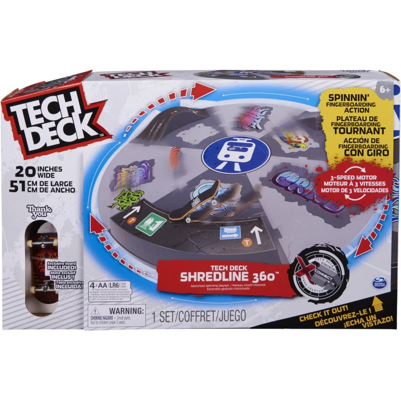 Get ready for some non-stop shredding with the Tech Deck Shredline 360! This 20-inch wide park features obstacles plates so you can create the ultimate Tech Deck skatepark! With 3 different speeds to choose from, you can cruise, train your skills, or pick up the spinning action for a challenge! Skate the park with the included exclusive pro fingerboard and add it to your mini skateboard collection. Combine the park with other X-Connect compatible fingerboard ramps, such as the Flip N’ Grind, Competition Wall, Neon Mega Park and Sk8 Garage ramp sets (each sold separately) to build the ultimate fingerboard skatepark for you to shred. Use the Tech Deck Shredline 360 with your Tech Deck fingerboard collection or Tech Deck BMX (each sold separately). Challenge your friends, develop your skills, and build your Tech Deck collection with other toy figures & playsets. Tech Deck fingerboards are for skate-lovers ages 6 and up who love small toys. Tech Deck mini skateboards for fingers and ramp sets make the perfect gift for girls toys age 6-8 who love small toys and cool toys or as an alternative to toy cars as a boys toys age 6-8 item. If you want real skate graphics from real skate companies, then it has got to be Tech Deck — start small, go big and collect them all! CUSTOMIZABLE 360 PARK: Get ready for some non-stop shredding with the Tech Deck Shredline 360 – the only motorized Tech Deck ramp! Use the fingerboard obstacle plates and X-Connectors to set up different combinations and hit obstacles in an endless loop! 3 DIFFERENT SPEEDS: Switch speeds and directions on this 20-inch wide obstacle course. It’s the ultimate training ground! Slow down to hone your skills or pick up the spinning action as you challenge your friends! EXCLUSIVE FINGERBOARD: Add to your finger skateboard collection and skate your creation with the exclusive Thank You fingerboard included in the set. BECOME A PRO: Combine other X-Connect playsets for the ultimate Tech Deck skatepark. Shred your exclusive finger board (each sold separately) with grip tape, bushings and more just like the pros do. COLLECT THEM ALL: Great toys for boys or toys for girls and gifts for kids that love collectibles, toy figures & playsets, or mini skateboards. Great Christmas gift, or birthday gifts ages 6 and up!