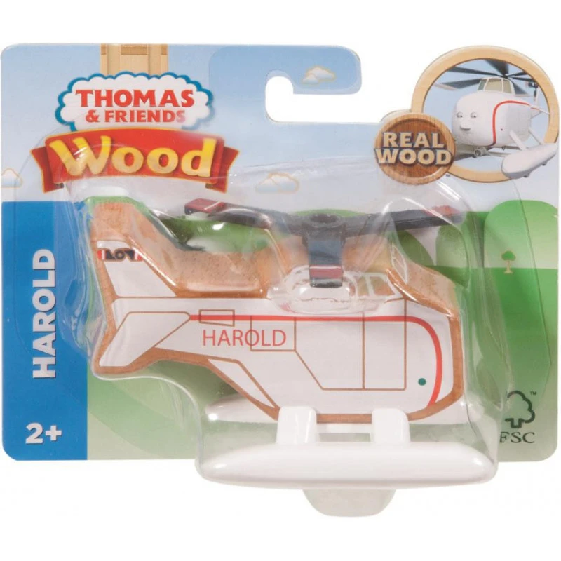 ou may notice something different about Thomas and all his friends – these classic toy trains have been redesigned with a fresh look featuring more exposed wood, contemporary patterns and brighter colour.  Thomas & Friendsâ„¢ Wood toy trains continue to deliver exceptional quality, imaginative play, and an emotional connection that only these iconic characters can provide. Harold is a courageous companion. He may spend most of his time in the sky, but he’s also down-to-earth. He’s happy keeping a watchful eye over his friends, and he’s willing to swoop in whenever they need help. For a seamless playtime experience, the redesigned toy trains are also compatible with classic Thomas & Friendsâ„¢ Wooden Railway (sold separately and subject to availability).