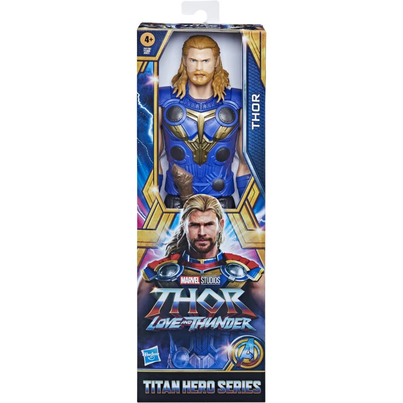 Thor unleashes the power of Stormbreaker to overcome any foe! Unleash the power of the Marvel Universe with the Marvel Avengers Titan Hero Series Thor: Love and Thunder Thor action figure! Kids ages 4 and up can imagine mighty action and adventure with this 12-inch-scale action figure, inspired by Thor: Love and Thunder, part of the Marvel Cinematic Universe. Featuring movie-inspired design and detail, as well as multiple points of articulation for poseable fun, boys and girls will love pretending to defend the universe with this large-scale Thor toy! Copyright 2022 MARVEL. Hasbro and all related terms are trademarks of Hasbro.