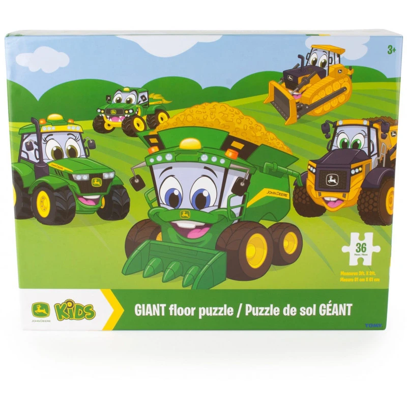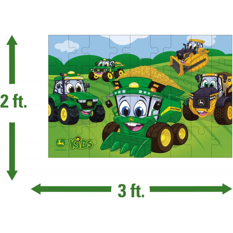 Have fun on the farm with this GIANT John Deere Kid’s Floor Puzzle! The 36 large pieces are each about 15cm x 10cm, which is the perfect size for smaller hands to play with as they perfect fine motor skills and hand-eye coordination. Put together, they reveal a fun picture featuring kid’s favourite John Deere characters. This kid-friendly puzzle includes a combine, tractor, gator, dump truck and bull dozer, each with a smiling face for kids to see when this large puzzle is done. The finished puzzle measures 91cm wide by 61cm high. With thick and sturdy pieces, kids can have fun putting this farm puzzle together over and over again!