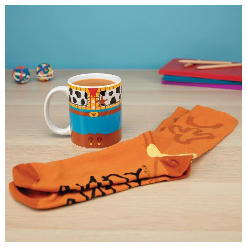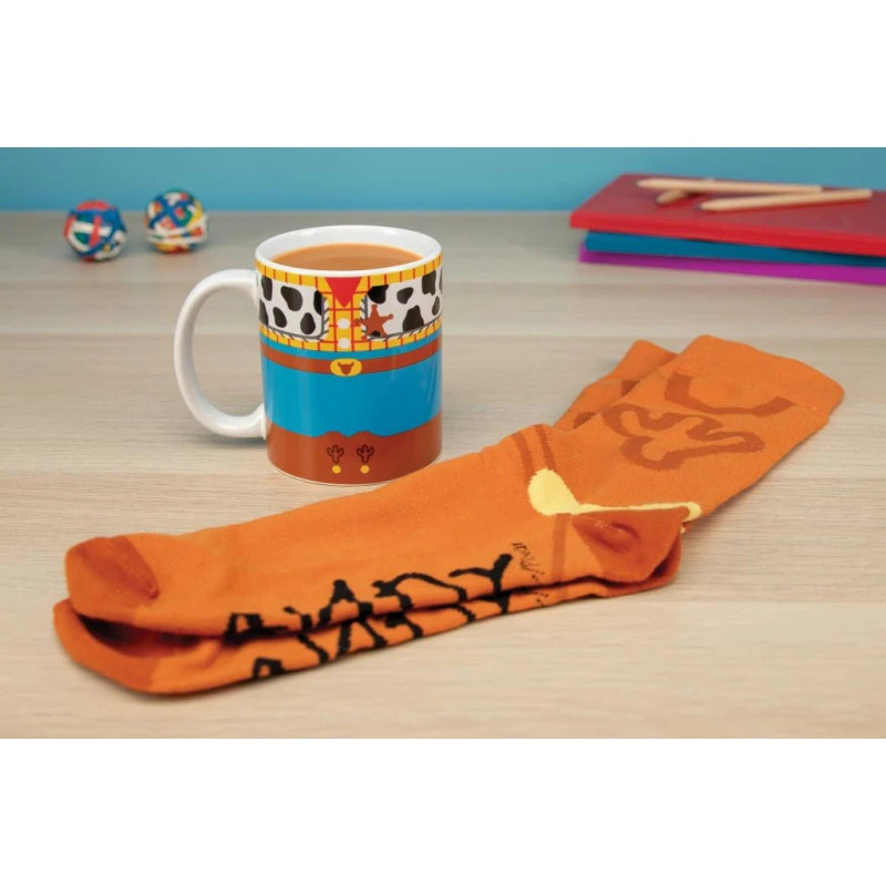 Start the day with everyone’s favourite cowboy with this super-fun Toy Story Woody Mug and Socks Set. This great little set includes a mug and a pair of socks both featuring iconic designs from the Toy Story series. The socks are in the design of Woody’s boots, with the name Andy written on the bottom, and the standard sized mug features Woody’s instantly recognisable clothes. Perfect for Woody fans, and lovers of the Toy Story series, the Toy Story Woody Mug and Socks Set is a great gift for Christmas and birthdays. First released in 1995, Toy Story broke new ground in cinema animation, and made lead characters Woody and Buzz household names. With two sequels proving to be equally popular in 1999 and 2010 respectively, the much anticipated 2019 release of Toy Story 4 highlights the ever growing fanbase for the much-loved franchise even 24 years after the original. The Toy Story Woody Mug and Socks Set is an officially licensed Disney/Pixar product.