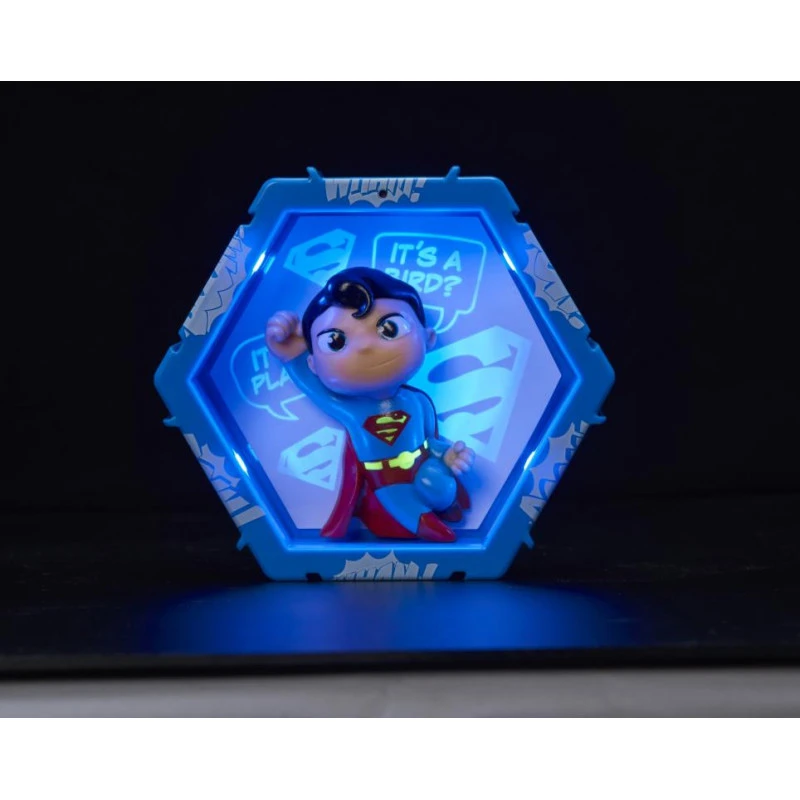 DC Super Friends includes 4 of your favourite characters; Batman, Superman, Wonder Woman & Joker. Connect the Pods together in any pattern you wish – Display your way! When triggered the IR sensor on the Pod illuminates, revealing hidden features (on character and decals) with UV lighting. Decal sheets included, some with UV reveal, to decorate the inside of Pod. Light automatically switches off after 30 seconds. Each pack contains one character which is secured inside the Pod, decal sheet and Instructions for use. Requires 3x AAA batteries not included. Presented in a branded box.